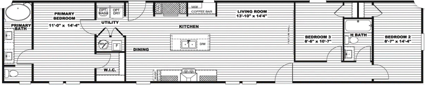 3 BED, 2 BATH | 16 X 76 | 1,216 square feet